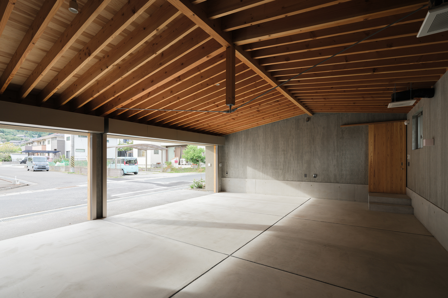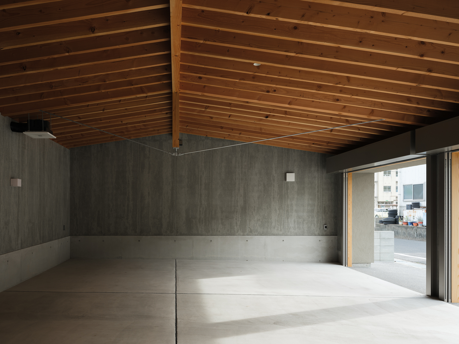 大きな一室空間を成立させるため屋根架構には張弦梁を用い、構造の合理性と軽やかさを両立させている